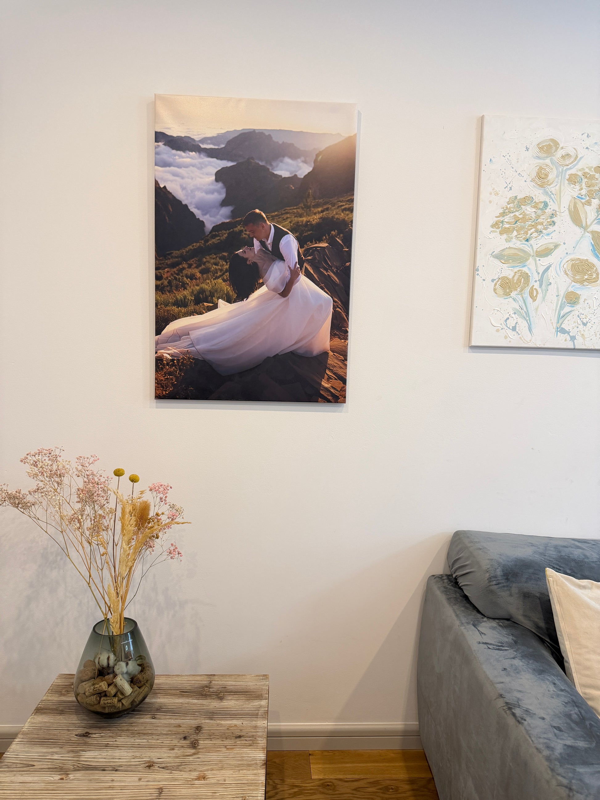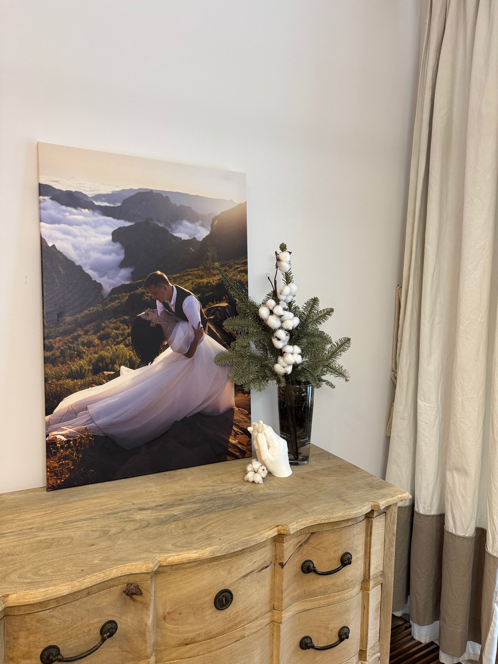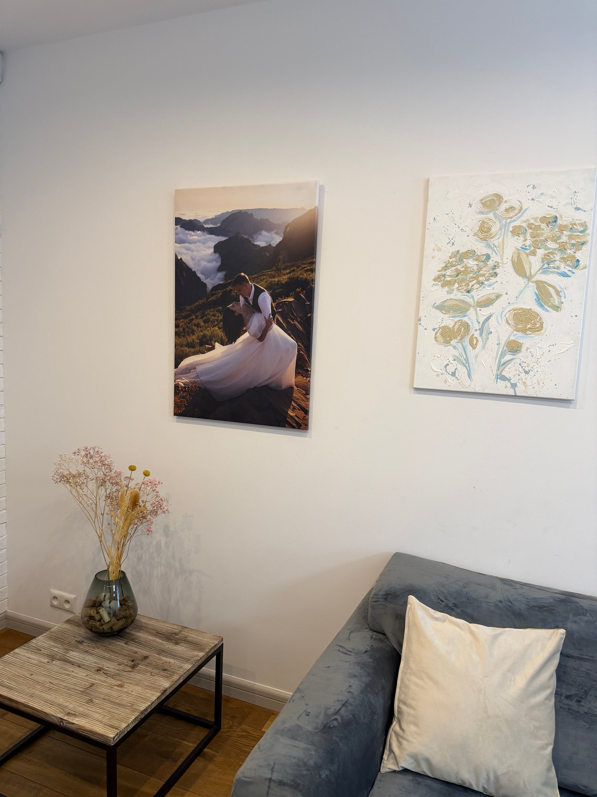 Wydruki realizujemy na wysokiej jakości płótnie, które jest precyzyjnie naciągnięte na trwałą ramę z naturalnego drewna.